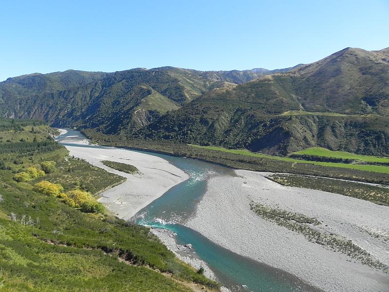 Island Hills mit dem Wairau River im Tal, entlang des SH7