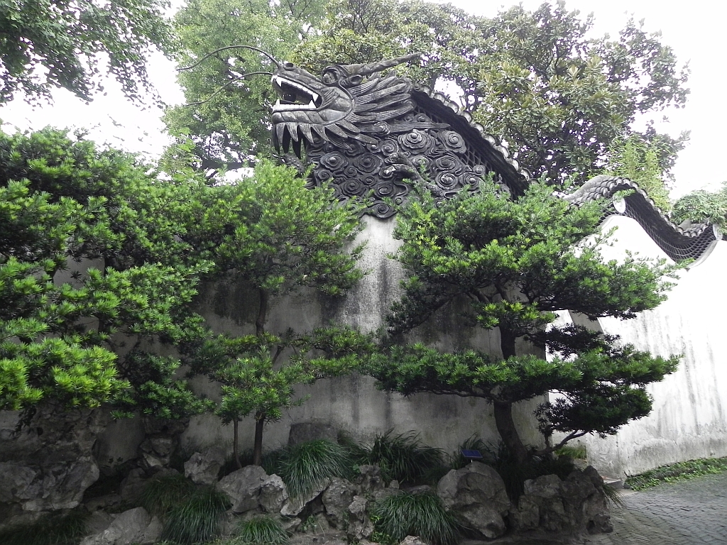 Da Shanghai keine Hauptstadt war, wurde hier auch das Symbol des Drachen (das Zeichen des Kaisers) sehr wenig verwendet. Der Drache taucht also nur dort auf, wo ein Beamter des Kaisers lebte – also in diesem Garten. Allerdings darf der Drache nicht 5 Zehen haben, sondern nur maximal 3.