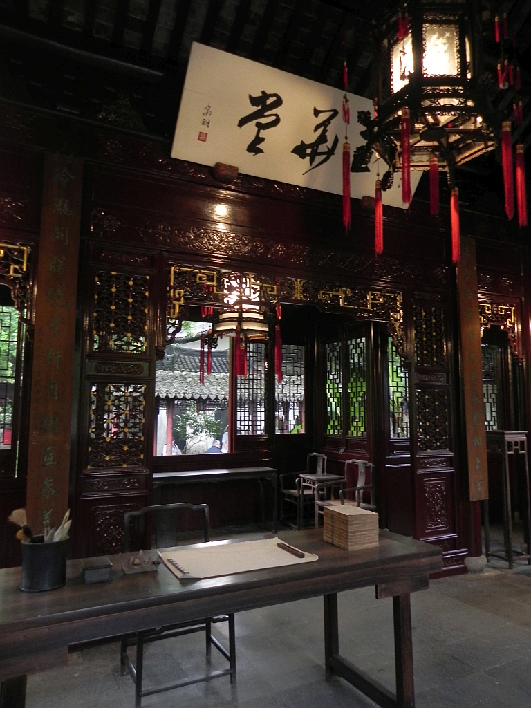 Fazit für den ersten Programmpunkt: Yu Garten schön, Gespräche mit Guide sehr nett, Altstadt sehr … Freizeitpark-artig. Mit Rosenverkäufern, die einem Plastik-Blumen andrehen wollen.