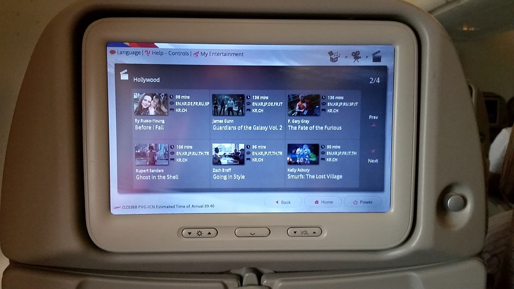 Asiana überzeugte wieder durch sehr guten Service, gute Sitze und für einen 2 stündigen Flug ein unglaublich umfangreiches Entertainment in der Economy.