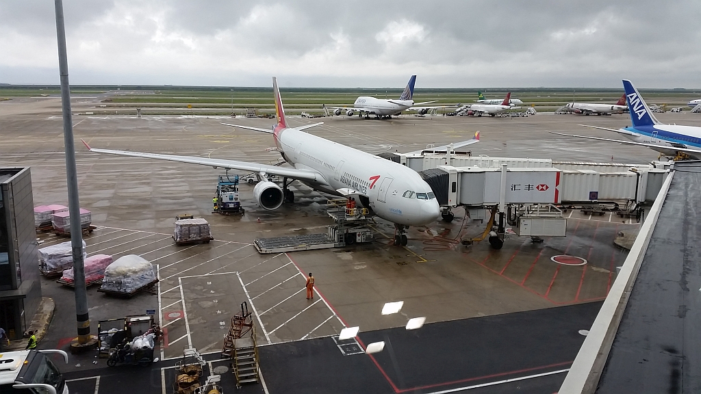 Der Asiana-Flug ab Shanghai Pudong ging um 8:35 Uhr – das bedeutete leider ein frühes Aufstehen um 5:30 Uhr und Abfahrt um 6 Uhr am Hotel. Daraus wurde 6:10, weil der Fahrer zu spät kam.
