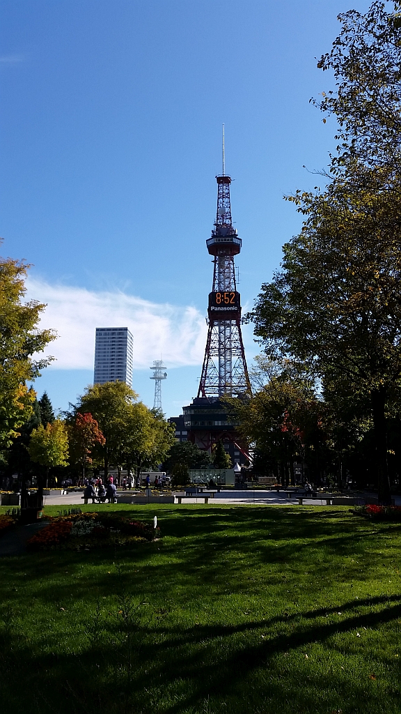 An einem Ende, gleich in der Nähe wo wir den Park querten, liegt der 147 Meter hohe Sapporo TV Tower.