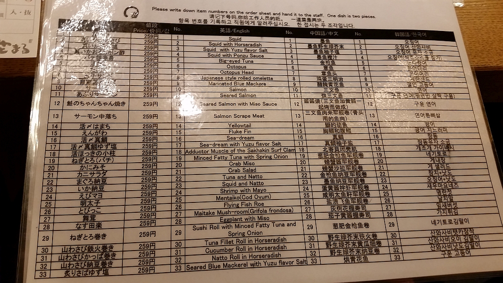 OK, die Karte war etwas gewöhnungsbedürftig – auch weil unsere Englisch-Vokabln bei einigen speziellen Fischen jetzt nicht wirklich ausreichend waren. Aber dafür gibt es ja einige Bilder.