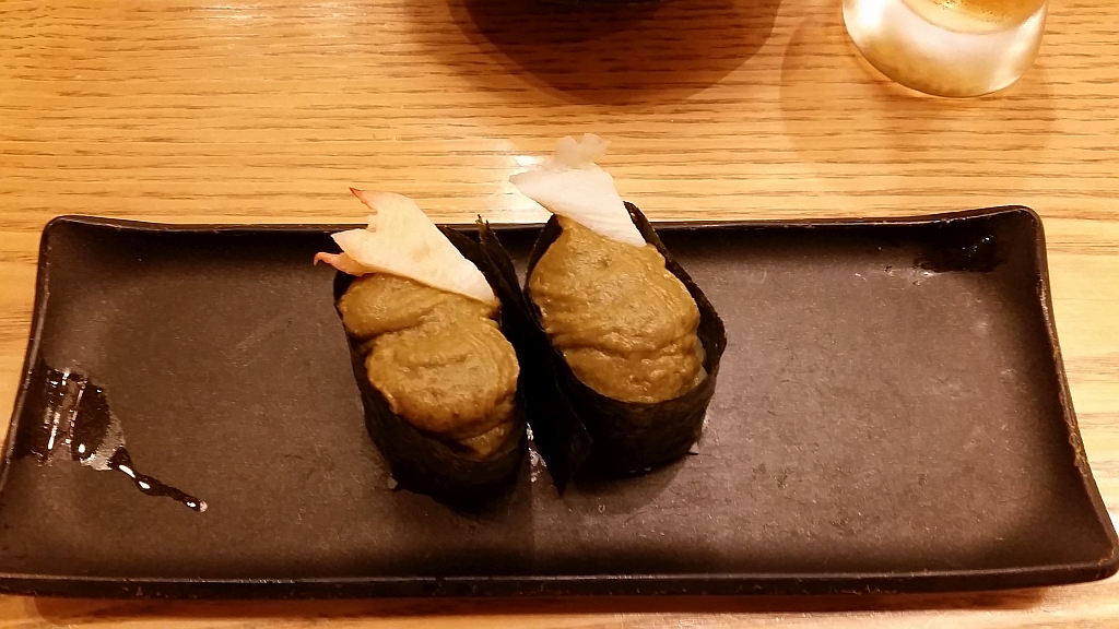 Rohe Krabbe mit Miso. Unerwartet, speziell und etwas, was wir nicht mehr bestellen werden.
