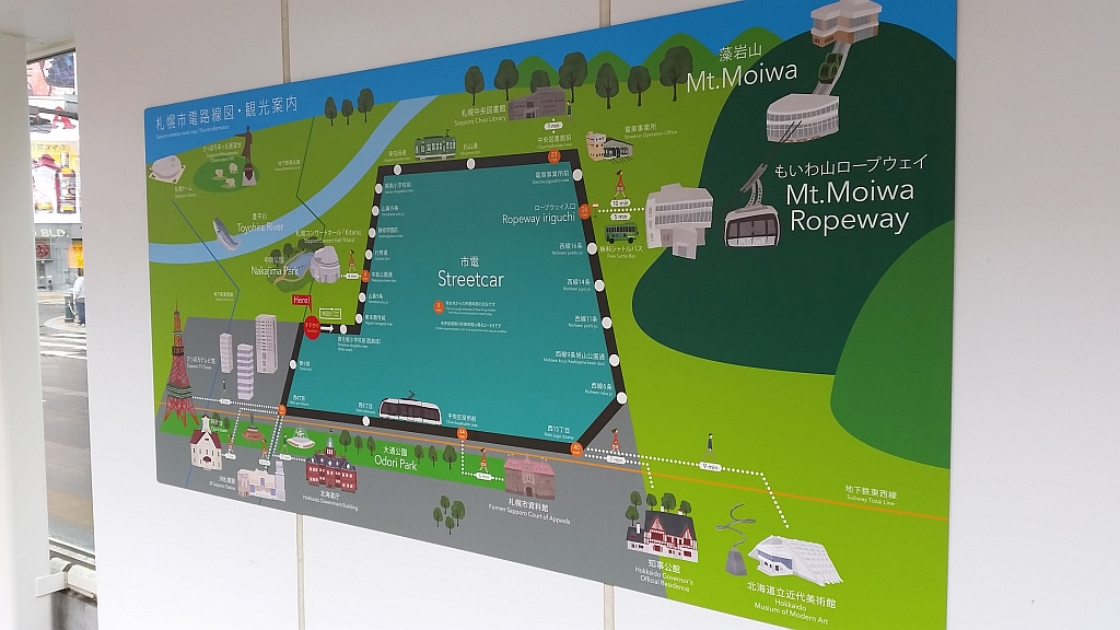 Die Idee war mit dem Streetcar von Sapporo zum Mount Moiwa zu fahren, einem Berg, von dem man aus einen schönen Blick auf Sapporo hat. In der Nähe ist auch das Olympia-Gelände mit der Sprungschanze und einem Sport-Museum. Beides wäre der Vormittag heute gewesen.