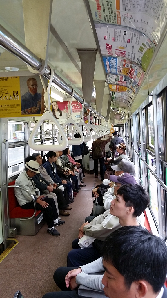 Streetcar fahren (also Strassenbahn im weitesten Sinne) ist wie Bus fahren in Japan: Hinten einsteigen, Ticket ziehen, beim Aussteigen das zahlen, was auf der Anzeigetafel beim Fahrer hinter der gezogenen Ticket-Nummer steht. Kein Problem, wenn man es weiss.