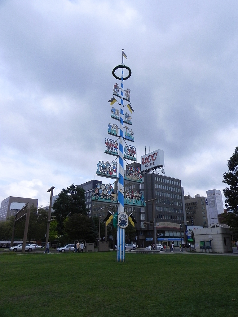 Also haben wir uns spontan umentschieden. Denn (und auch das war ein Grund): In der Bahn nach Otaru gestern haben wir eine Werbung für den hiesigen Fussballverein gesehen: Hokkaido Consadole Sapporo! Und genau dieser Verein sollte heute gegen Sendai spielen. WIe Essen, Bier und Eisenbahn gehört schliesslich auch der Besuch eines Sportereignisses zu unseren „MustDo“-Punkten, daher haben wir gestern noch Karten gekauft und werden heute um 14 Uhr im Sapporo Dome erwartet. Daher waren die Möglichkeiten für weitere Aktivitäten eher dünn gesät und auch aus diesem Grund haben wir uns gesagt: OK, wir gehen nicht auf den Berg, sondern zu einem kleinen Festival in der Stadt.