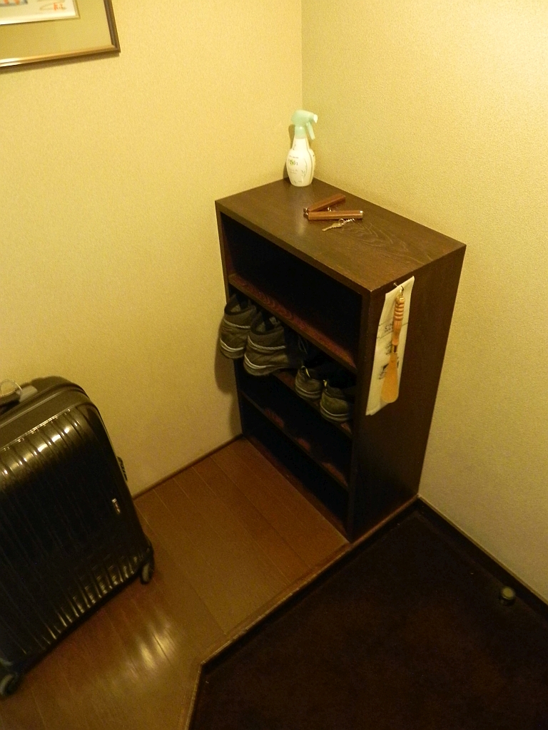 Nach dem Einchecken, was hier etwas länger gedauert hat wegen der Sprachbarriere, ging es zu unserem Zimmer. Wann immer man auf so eine Holzkante trifft, ist es wahrscheinlich, dass man die Schuhe ausziehen muss.
