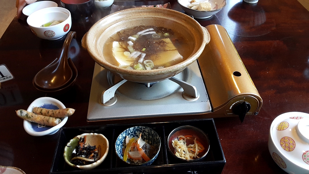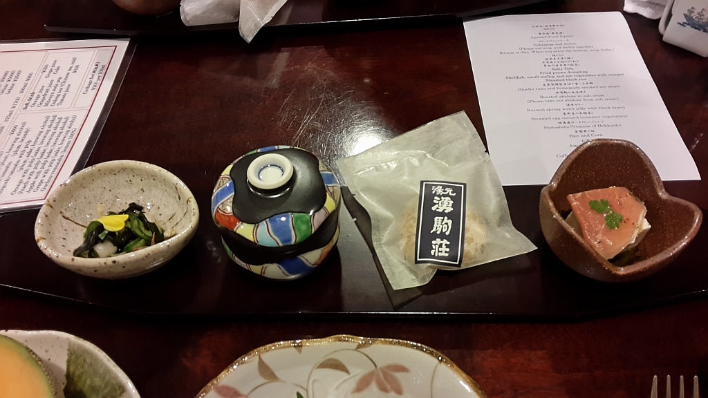 Nach dem Aufwachen sind wir direkt wieder ins Onsen und danach ging es zum Frühstück. Obwohl recht hart, waren die Futons doch sehr bequem – kann aber auch sein, dass die Rückenschmerzen bei den ständigen heissen Quellen einfach keine Chance hatten.