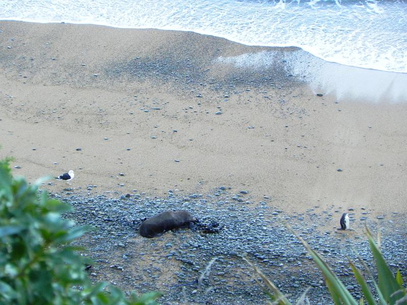 Darunter den vielleicht faulsten Pinguin der Welt. Der stand bereits so da, als wir gekommen sind. Und er stand noch da, als wir weggegangen sind. Was, so gesehen, passte, da er neben der faulsten Robbe (lag auch die ganze Zeit da) und der faulsten Möve (stand die meiste Zeit genau da) stand. Scheinen so eine Art Herde zu sein, die drei …