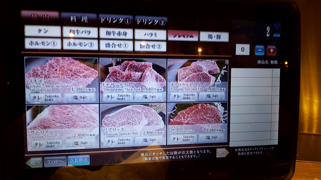 Yakiniku bedeutet „gegrilltes Fleisch“ und im Grunde genommen ist das auch eine Beschreibung der Speisekarte. Was uns auch hilft: Die Bestellung macht man mit einem Pad am Tisch und da sind auch Bilder dabei. Und alleine die Bilder wiederzusehen machte schon Hunger.