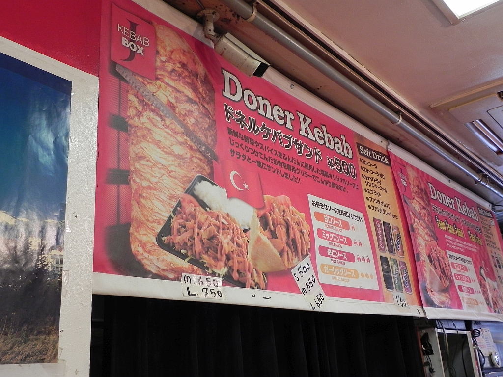 Dieser Dönerstand (davon gibt es in Tokio echt viele) stand in Harajuku, dem Szenevirtel Japans. Dort wollten wir uns eigentlich einen Park anschauen, der südlich der Station liegt. Ausser vielen, vielen Kaufhäusern haben wir aber nichts gefunden. Daher (und wegen dem Kopf): Döner!