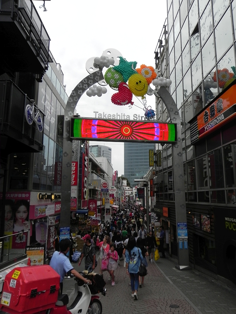 Da dieses Ziel irgendwie nicht zu finden war, sind wir die berühmte Takeshita-dori (die Cosplay- und Klamotten-Strasse) entlang zurück zur Station gegangen. Was für ein Durcheinander aus Touristen, Hipster, Japaner (die einkaufen wollen), Japanern (die sich das Treiben anschauen wollen), … – bunt und laut!