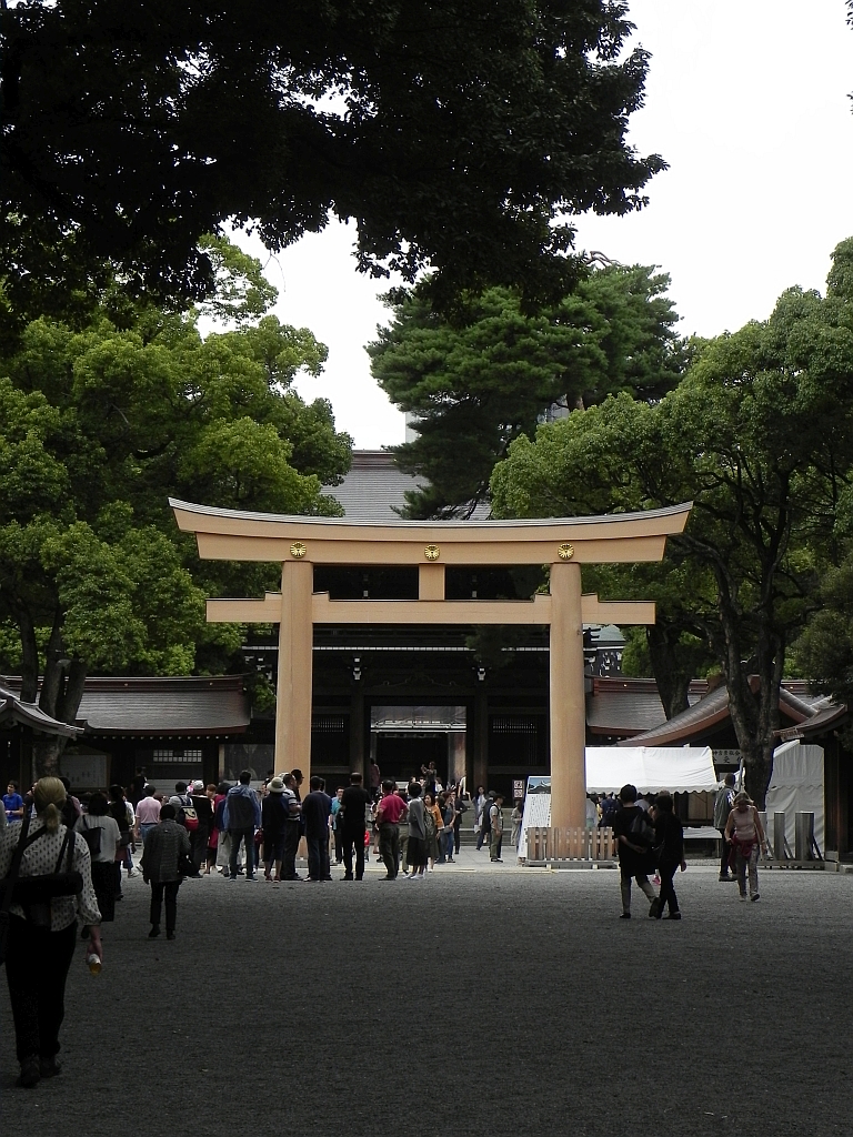 Der Shinto-Schrein ist den Seelen des Meiji Tenno und seiner Frau gewidmet, wobei der Kaiser selber woanders, nämlich in der Nähe von Kyoto, begraben ist.