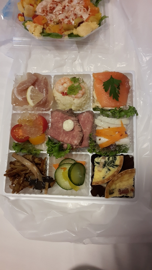 Also sind wir von Yokohama aus nach Tamachi gefahren. Auf dem Weg haben wir eigentlich versucht, eine der japanischen Burgerketten (MosBurger oder Lotteria) zu finden. Gelang uns aber nicht, denn weder in Yokohama oder in Shinagawa oder Tamachi haben wir nix gefunden. Also haben wir uns BentoBoxen orgenisiert und diese auf dem Hotelzimmer gegessen.