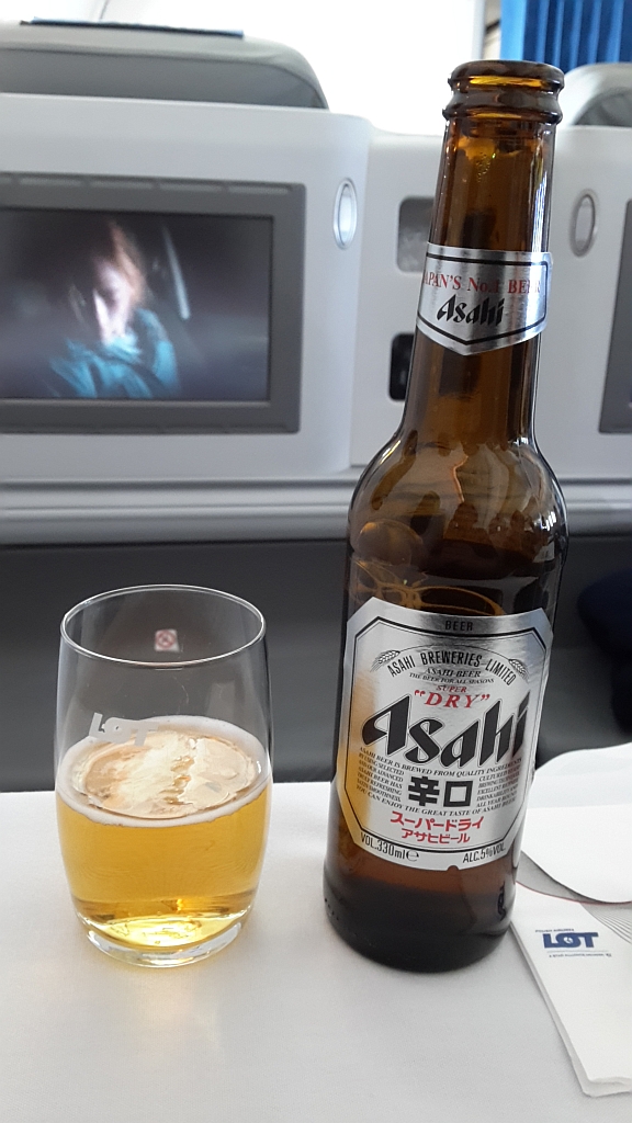 Einziges Manko von LOT: Sie haben kein schönes Bier. Immerhin gab es Asahi, aber da stinken sie gegen SAS mit Mikkeller doch deutlich ab.