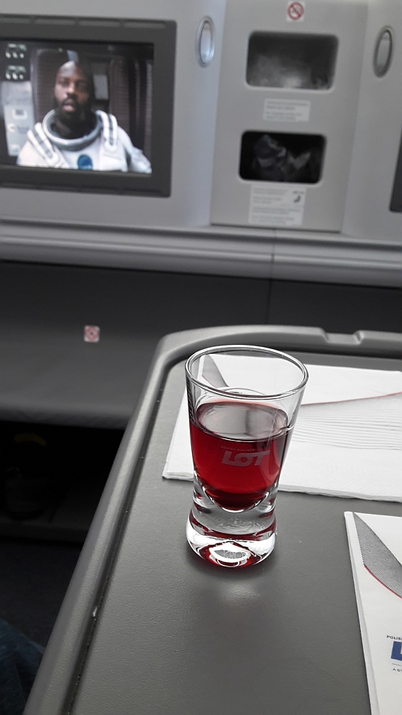 Dabei gab es (wir sind ja in einer polnischen Fluglinie) einen Zwetschgenschnapps.