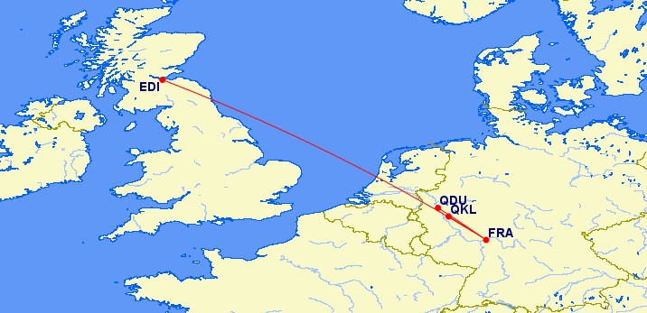 Diesmal geht es wieder von Köln über Frankfurt nach Edinburgh. Und dies bedeutet: Zugfahren.