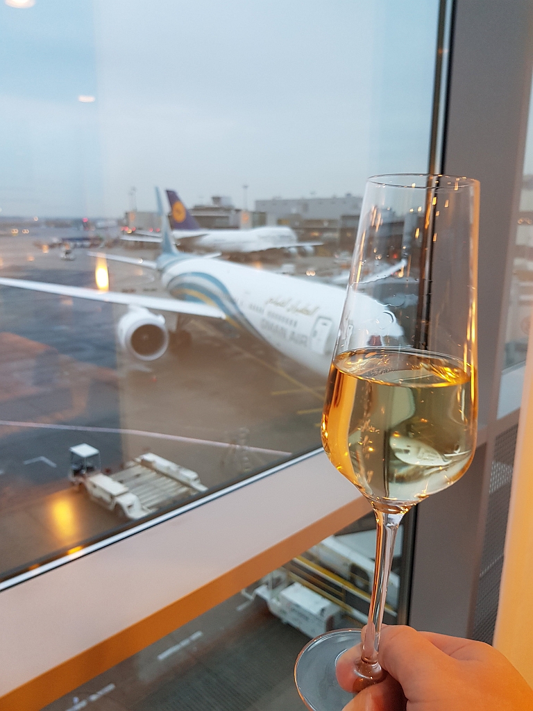 Im Terminal B ist unserer Meinung auch eine der schönsten Lounges in Frankfurt: Die Senator Lounge. Und dort sitzen wir gerade und lassen es uns gut gehen.