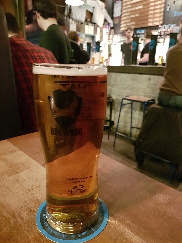 Zufälligerweise waren wir auch genau zu dem Zeitpunkt da, wo ein neues Bier zum ersten Mal in den Verkauf ging: Um 18 Uhr wurde nämlich zeitgleich in allen Brewdog Pubs in UK das neue „Indie Pale Ale“ ausgeschenkt.