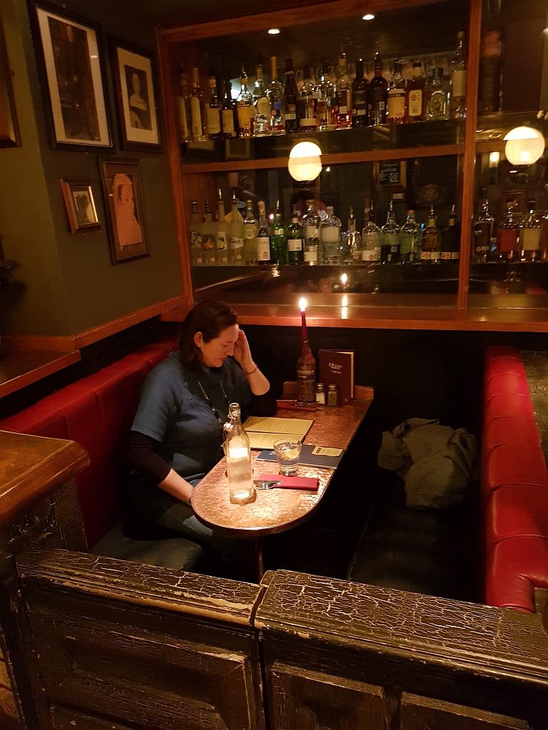 Ein kurzer Fußmarsch und schon waren wir da. Und das in einem wirklich schönen Pub mit einer guten Getränke- und einer sehr interessanten Speisekarte. Und schönen Tischen / Separees: