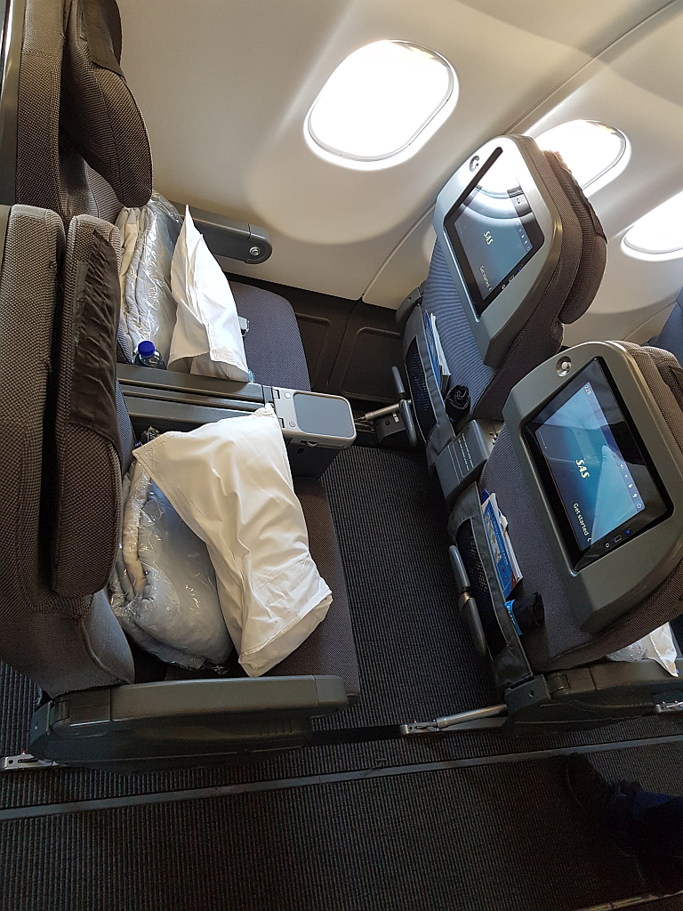 Die Premium Economy, SAS Plus genannt, ist in den A330 von SAS in einer 2-3-2 Bestuhlung arrangiert, was gerade für Pärchen die ganze Sache recht angenehm macht. Unsere Sitze in der Reihe 21 waren auf jeden Fall für 9 Stunden völlig ausreichend, auch wenn an angenehmes Schlafen natürlich nicht zu denken war.