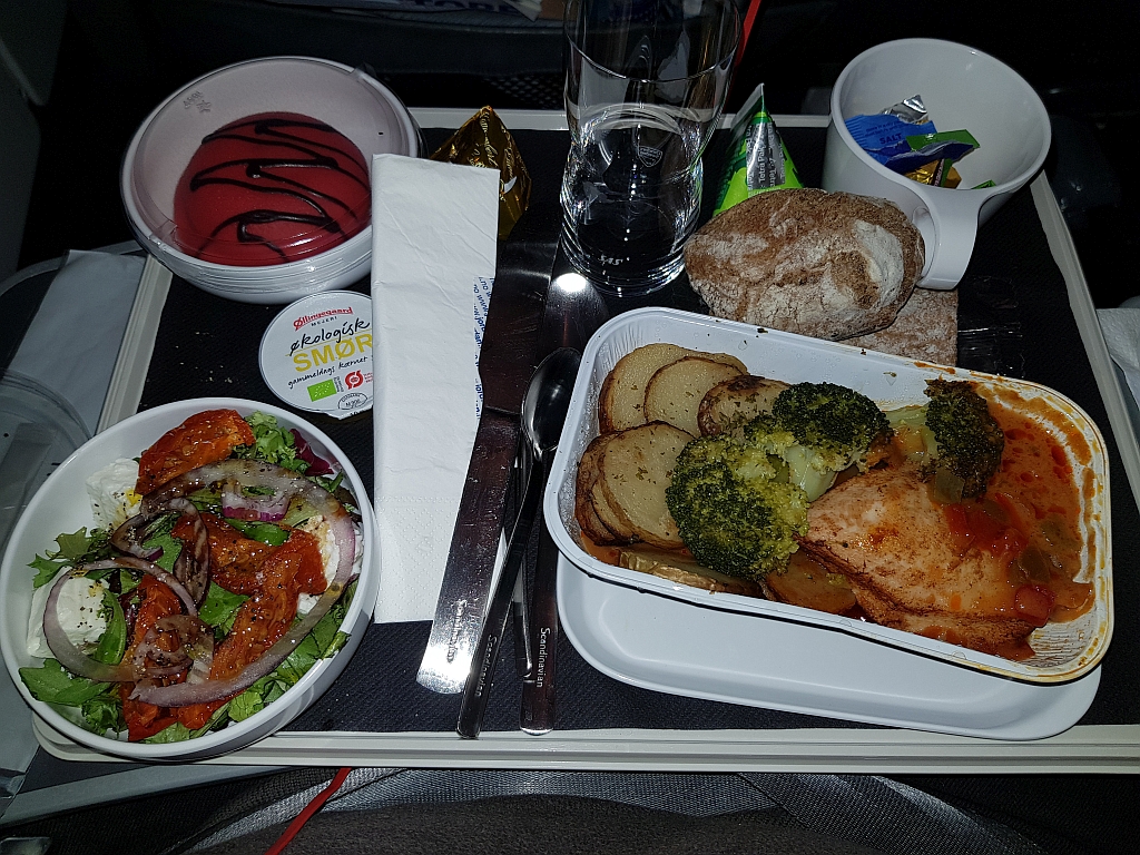 Das Essen (Hühnchen mit Kartoffeln und Brokkoli, einem Salat und einem Erdbeer-Nachtisch) war ok, wenn auch nix dolles. Hatten wir aber auch nicht erwartet.
