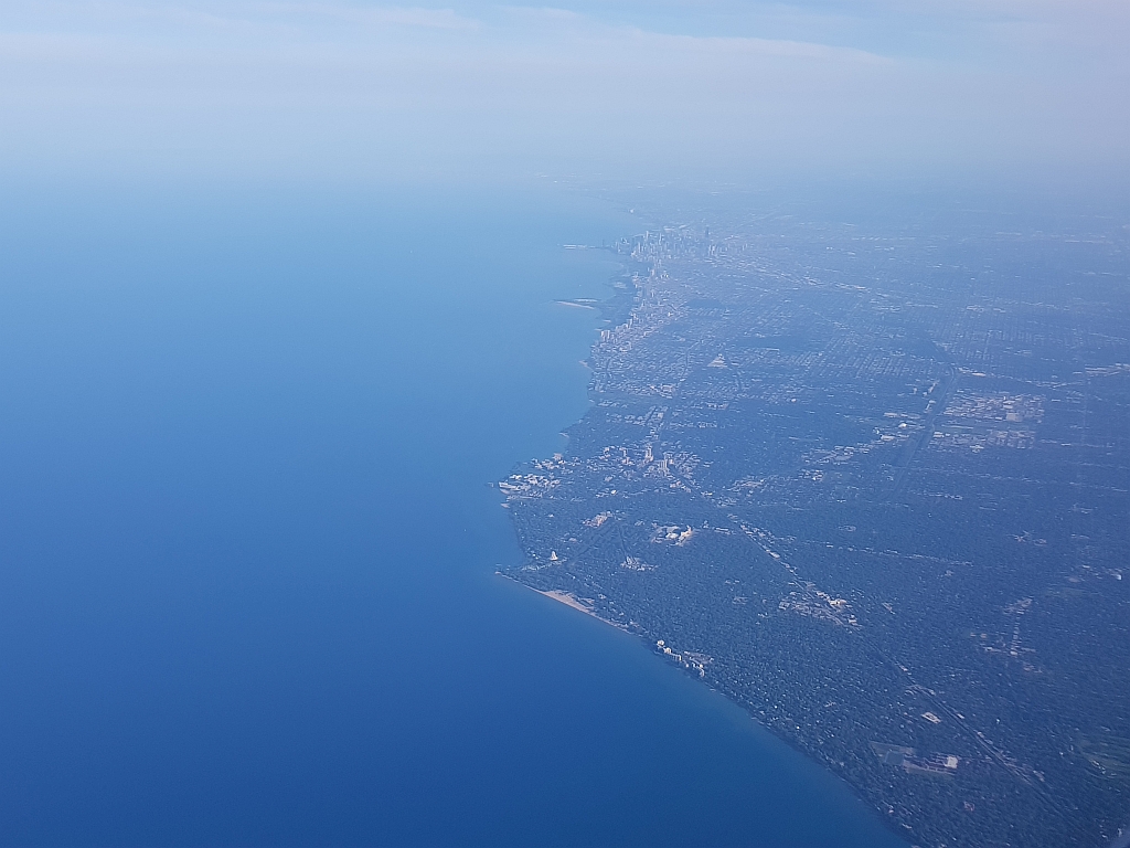 Danach haben wir uns durch die Filme gearbeitet (Thor, Avengers, Maze Runner 3, …) und so die Zeit herumgeschlagen, bis wir über dem Lake Michigan waren und Chicago, „The windy city“ in Sicht kam.