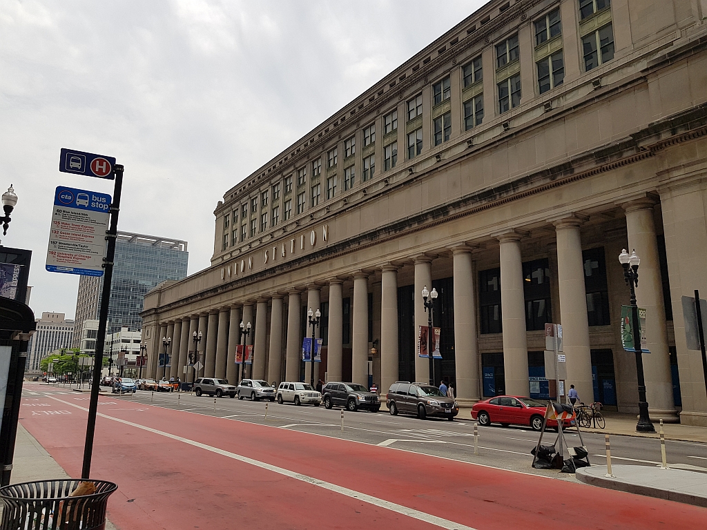 Nachdem wir aus dem Hotel unsere Koffer abgeholt haben, ging es zu Fuß durch das schwüle Chicago zur 15 Minuten entfernten Union Station.