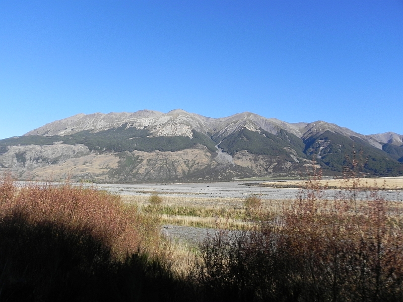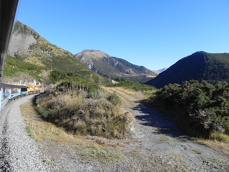 Auch folgten wir hier weitestgehend dem Waimakariri Fluss, wodurch es echt gute Fotomöglichkeiten auf den sich aus den Bergen windenden Fluss gab. Erleichtert wurde das Fotografieren übrigens durch den offenen Aussichtswagen, was ich sehr witzig fand. Das mit dem witzig hat dann zwar rasch in den vielen Tunnels aufgehört (*röchel*), aber die Bilder sind schon gut geworden.