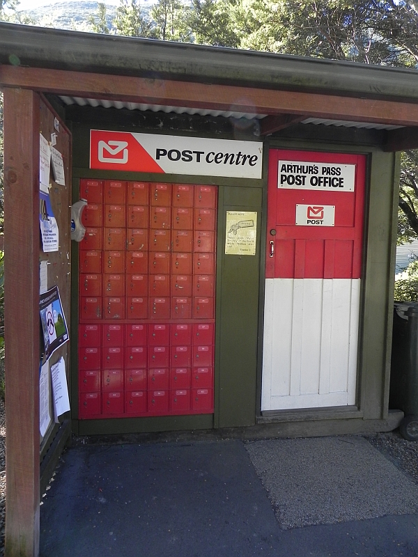 Das Dorf liegt an einem Pass über die Berge, durch den auch der State Highway 73 führt. Die Größe des Dorfes kann man recht gut an dem Postamt festmachen. Hier also die Zentralpost von Arthur´s Pass: