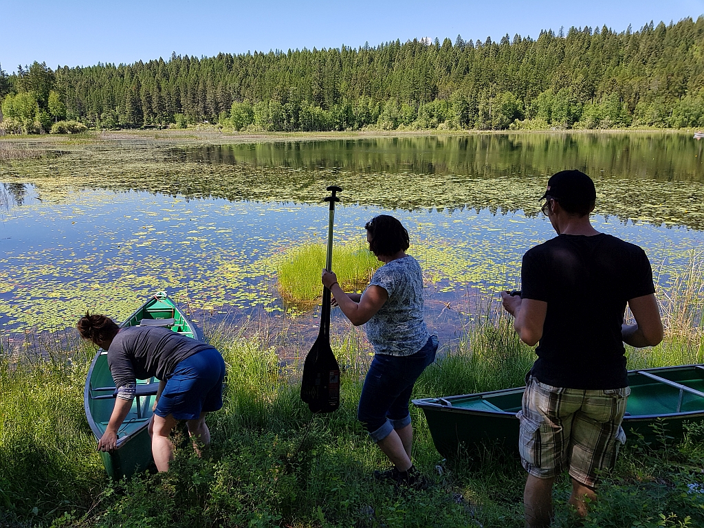 Also wurden die 2 Kanus bereitgemacht, bis auf Meike bekamen alle einen Becher Kaffee in die Hand und raus auf den See. Bzw. erst einmal rein ins Boot.