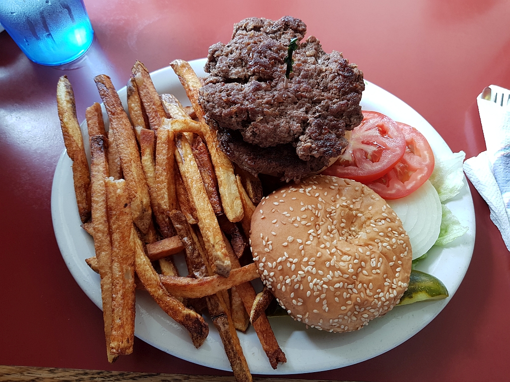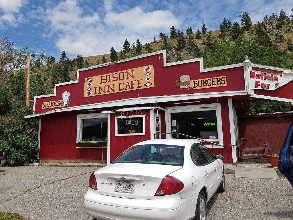 Leckerer Bison-Burger in einem kleinen Roadside Cafe im Reservat südlich der Bison Range.