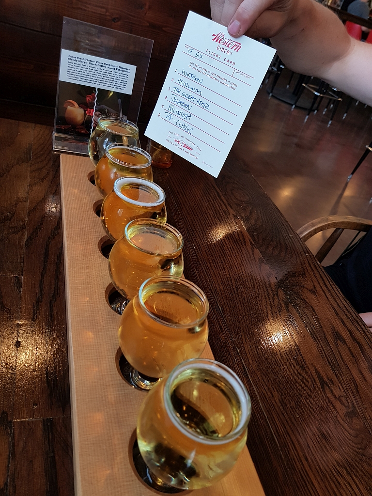 Und das war eine wirklich gute Entscheidung, denn auf dem Weg haben wir zu unserer Überraschung eine Cider-Brauerei gefunden, wo wir alle dort vorhandenen Ciders probiert haben. Am spannensten war ein mit Hopfen versetzter Cider – sehr cool!