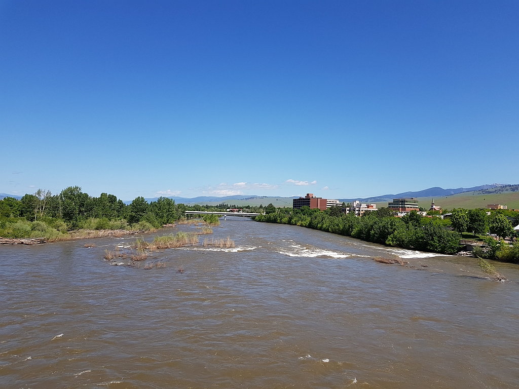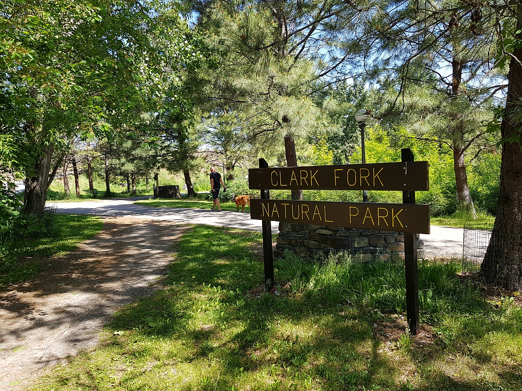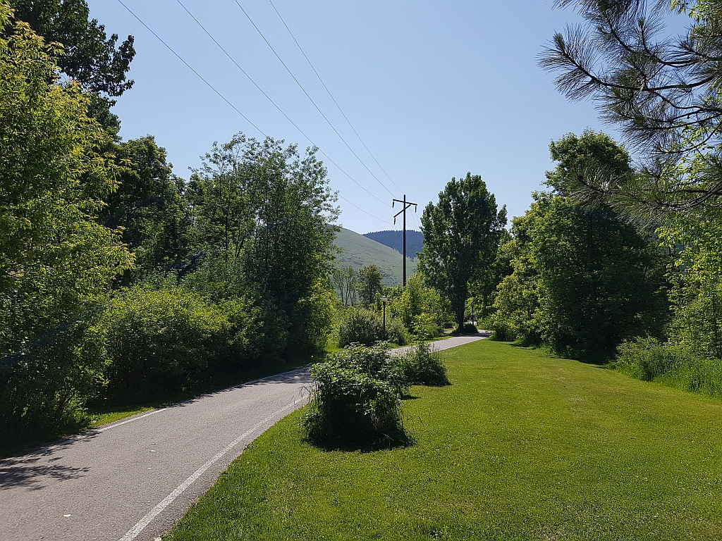 Durch einen nahen Park und den schönsten Sonnenschein ging es an der ehemaligen Bahntrasse durch Missoula entlang in Richtung Downtown.