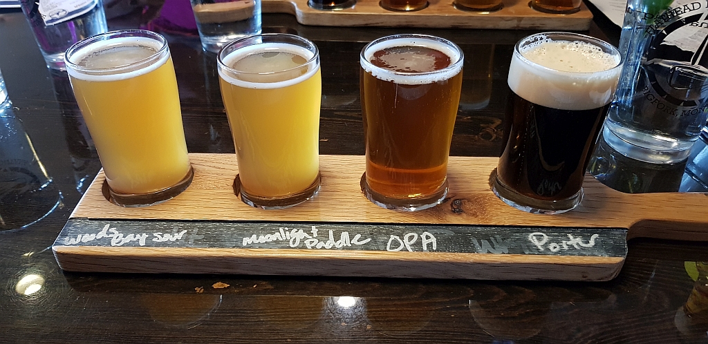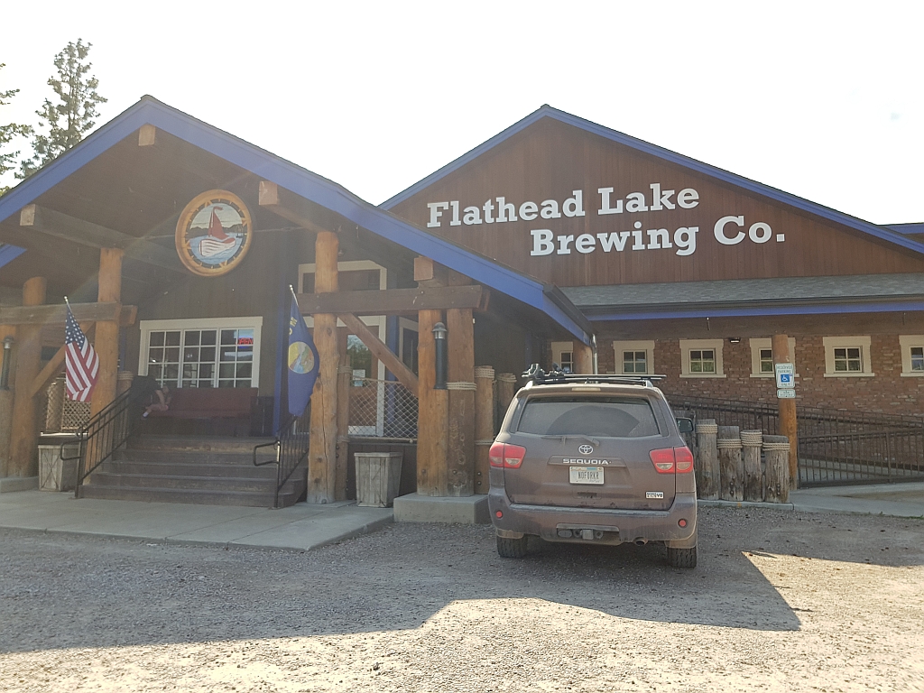 Auf dem weiteren Weg stellte sich (nachdem eigentlich fast alle wieder eingeschlafen waren) langsam Hunger ein und zufälligerweise war eine Brauerei gleich auf dem Weg: Die Flathead Lake Brewing Company!