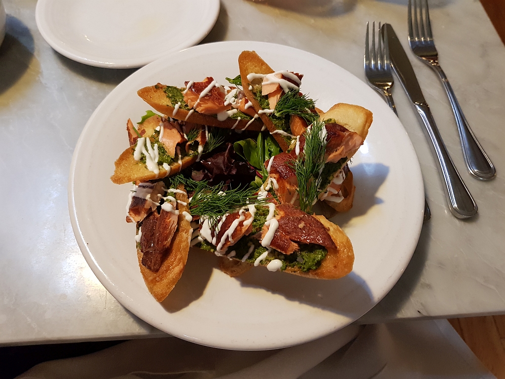 Als Vorspeise gab es zum Beispiel auch Forelle auf Brot.