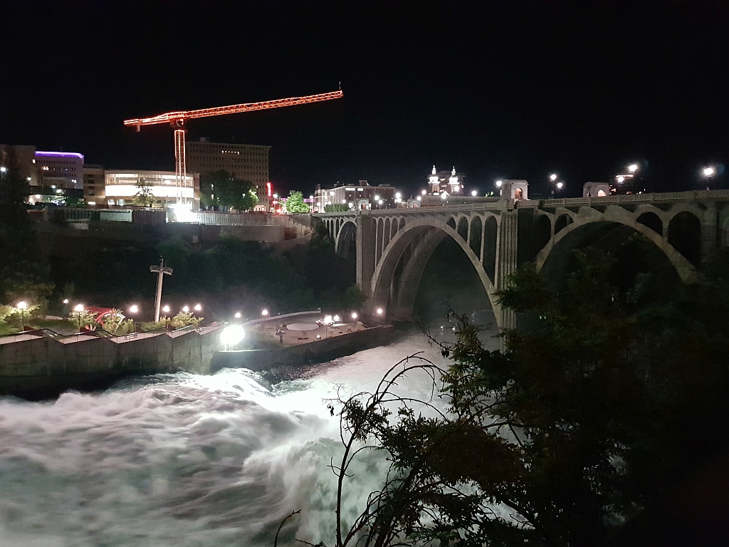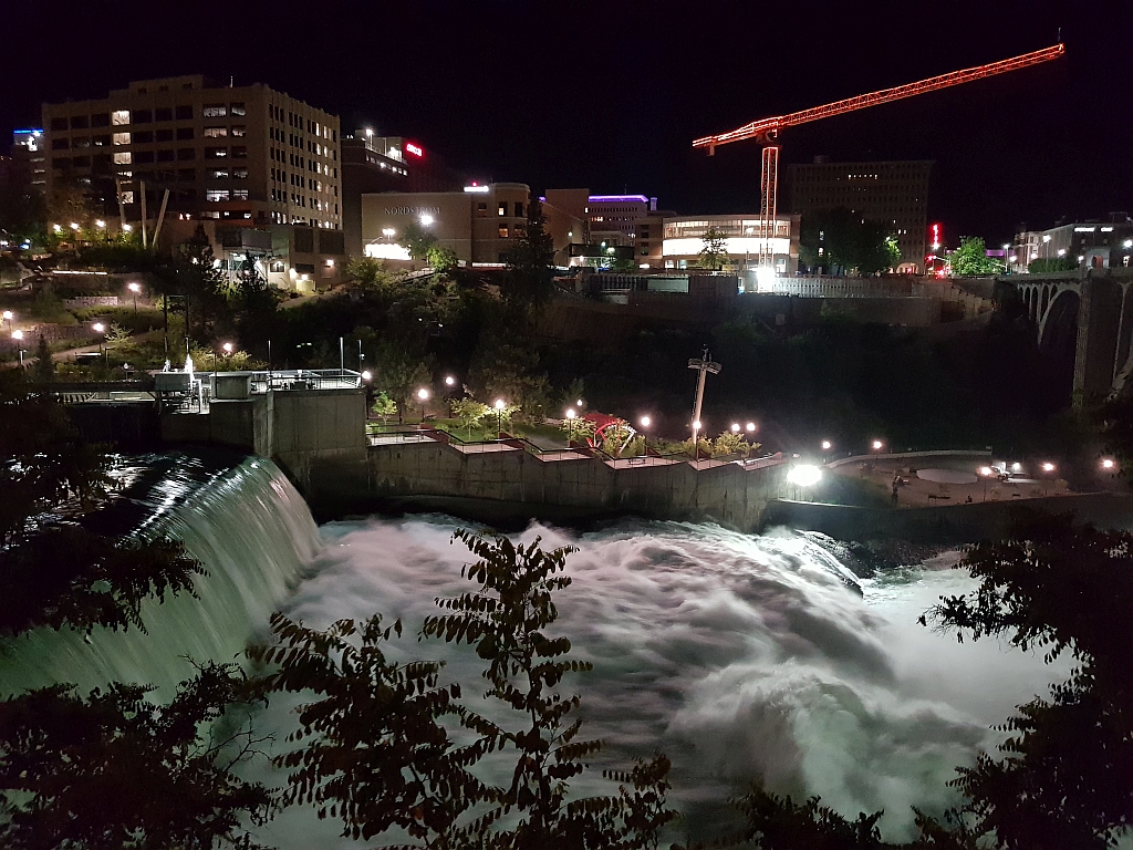 Dabei haben wir noch einige schöne Eindrücke vom nächlichen Spokane (wo die Bürgersteige schon fast hochgeklappt waren) und dem Wasserkraftwerk am Spokane River direkt in der Stadt.