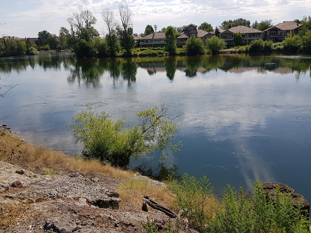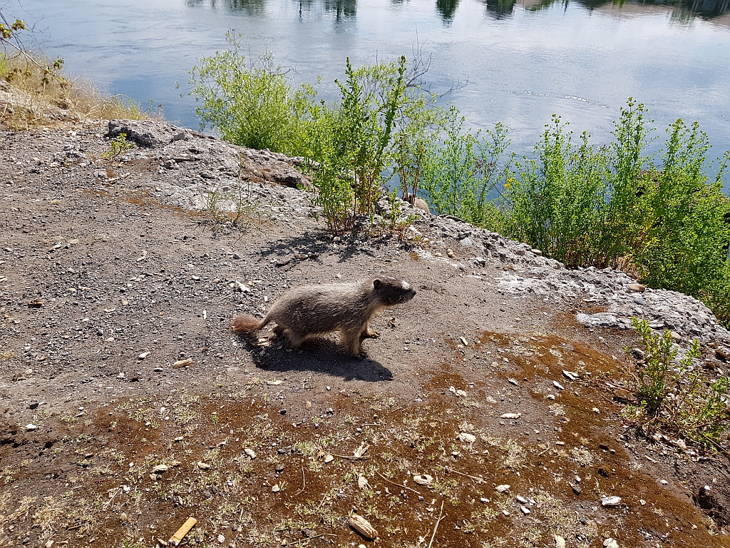 Nach einer erholsamen Nacht in Spokane trafen wir Max gut gelaunt (und schon wesentlich länger auf den Beinen) vor dem Auto. Bei seinem Morgenspaziergang hatte er eine interessante Begegnung gehabt, der wir dann nachgegangen sind, denn direkt hinter unserem Hotel verlief der Spokane River.