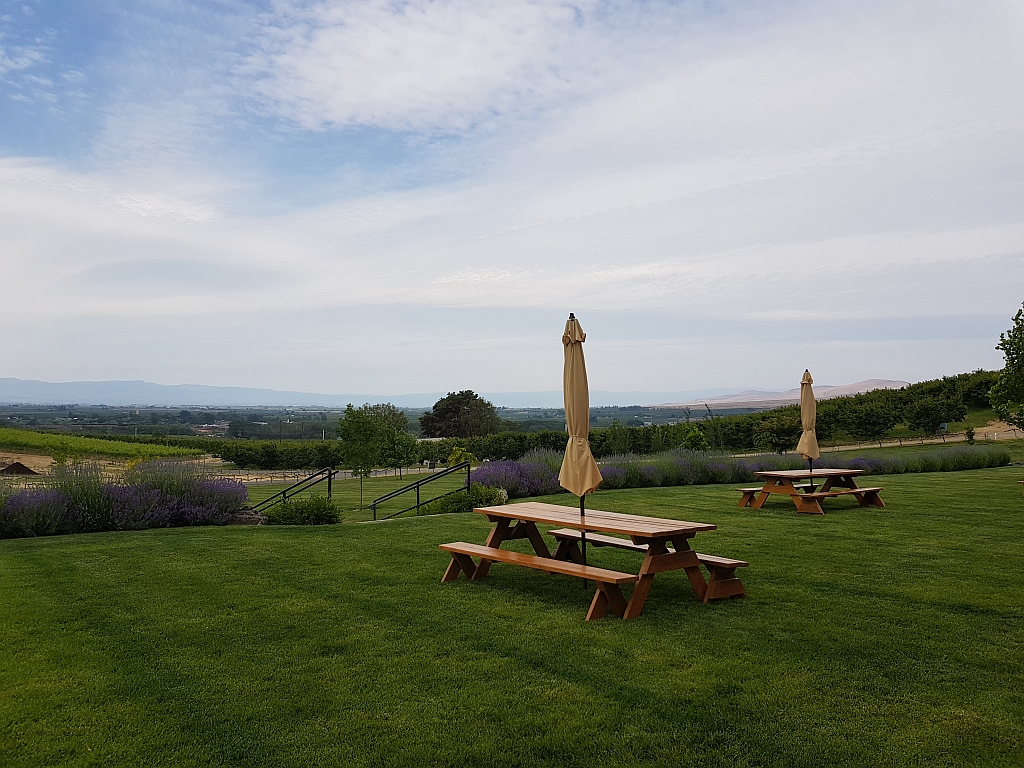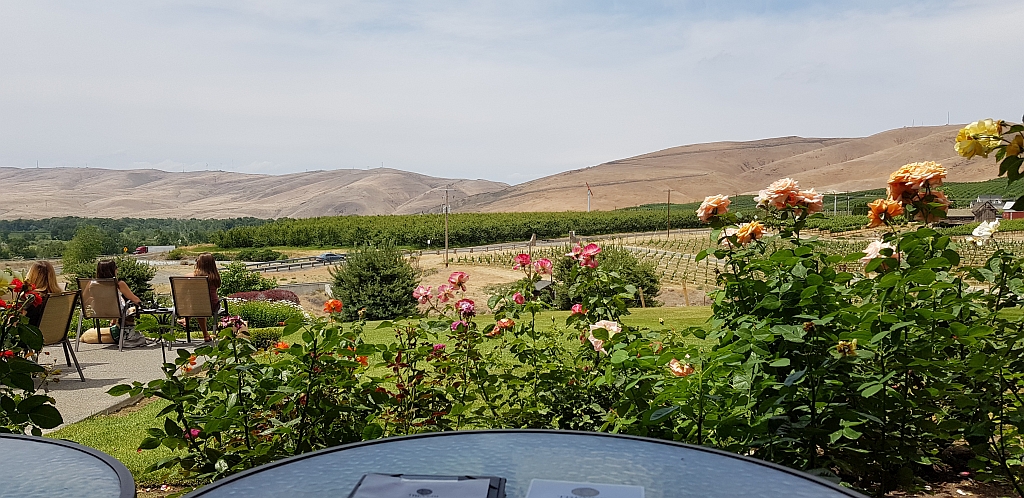 So gut gestärkt waren wir pünktlich wieder am Hotel und trafen auf Eric, der uns die Weinregion näher bringen wollte. Eric hat lange als Salesmanager gearbeitet, wurde gekündigt und hat sich dann (mit Mitte 50) nochmal zu einem Bachelor in Oenologie (also Weinanbau) entschlossen und arbeitet seit 3 Jahren als Tourguide in Yakima.