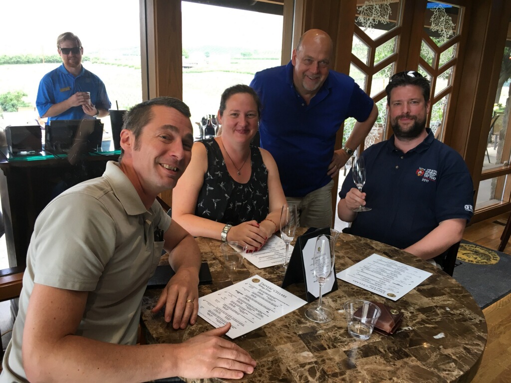 Was allerdings dann noch besser war: Der Inhaber und Kellermeister von Treveri Cellars heißt Jürgen Grieb, kommt aus Trier und hat an der Mosel Weinbau gelernt. Und netterweise, nachdem Eric ihm gesagt hat, dass wir aus Deutschland und Österreich sind, kam er zu uns und wir haben uns eine ganze Weile unterhalten.