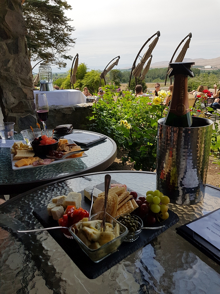 Und weil wir es hier so schön fanden, haben wir uns gleich hingesetzt und was zu Essen bestellt. Und noch eine Flasche von dem Syrah-Sekt „verkostet“ …