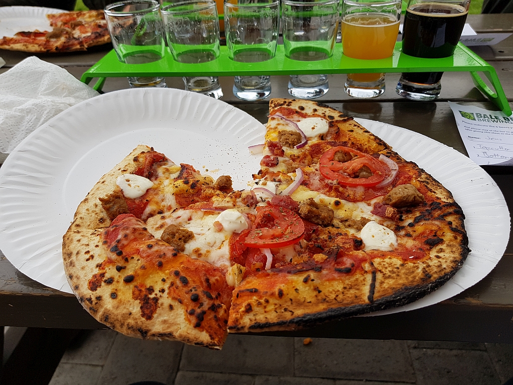 Gut dabei: Es war ein lokaler Pizzabäcker mit seinem mobilen Pizzaofen (coole Sache) da, der witzigerweise eine Pizza mit Hopfen anstelle von Oregano anbot. Sehr lecker!