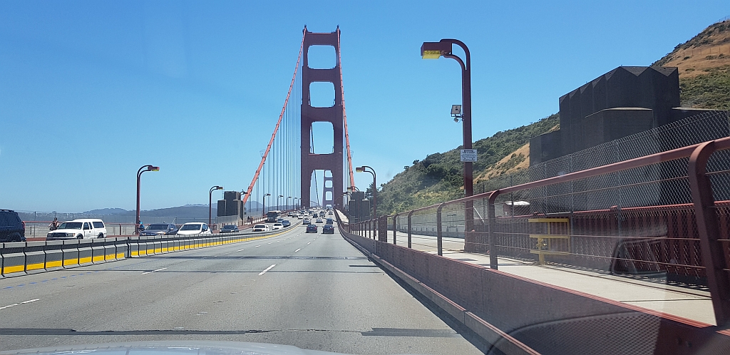 Und als erstes Highlight: Die Golden Gate Bridge. Die werden wir später nochmal überqueren – jetzt war es ein eher kurzes Vergnügen. Aber eine gute Art nach San Francisco zu kommen …