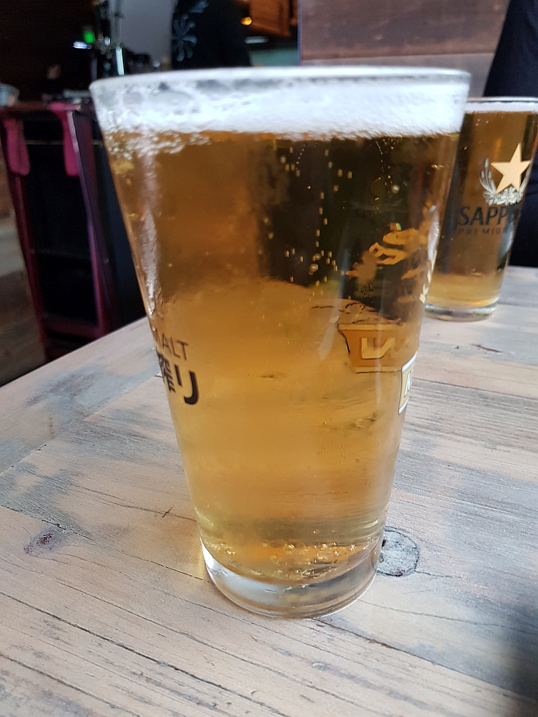 Wir haben in fußläufiger Entfernung ein schönes Izakaya gefunden und uns dort den Bauch mit sehr kreativer japanischer Küche vollgeschlagen. Izakaya geht ja auch oft einher mit japanischem Bier. Also denn …
