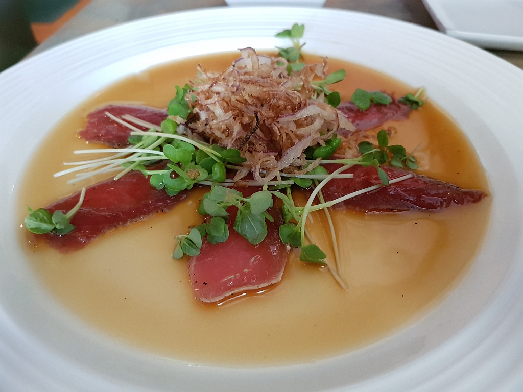 Cappachio vom Toro (Thunfisch Bauch) und gerösteten Zwiebeln