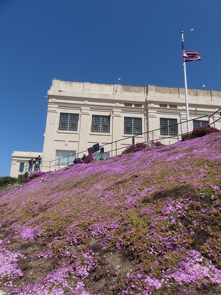 Draussen konnte man dann sehen, dass Alcatraz langsam von der Natur wiedererobert wird. Viele Pflanzen, Vögel und andere Tiere bevökern die Insel. Überall Möven und Pelikane und blühende Pflanzen.