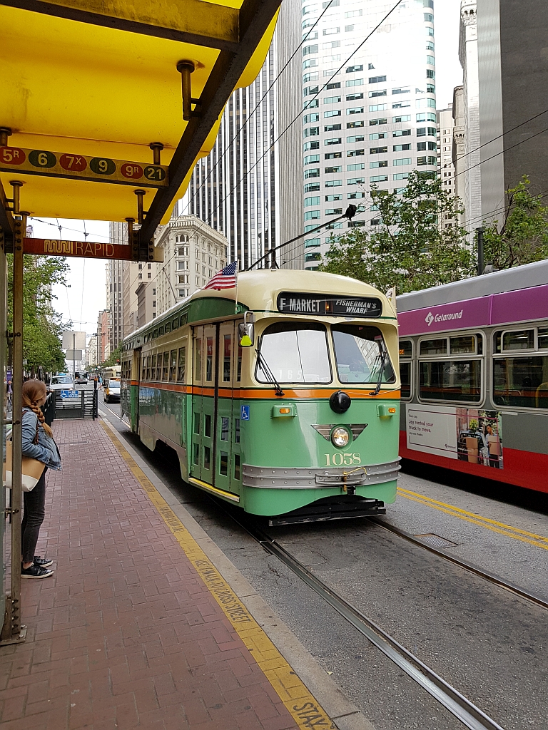 Dort stiegen wir in die Linie F um, welche wir nach kurzer Suche auch gefunden haben. Das sind nämlich die alten Strassenbahnen in San Francisco.