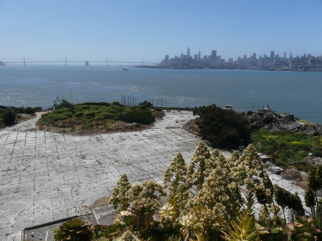 Und im Hintergrund (hier hinter dem ehemaligen Paradeplatz vom Fort Alcatraz) immer wieder San Francisco.
