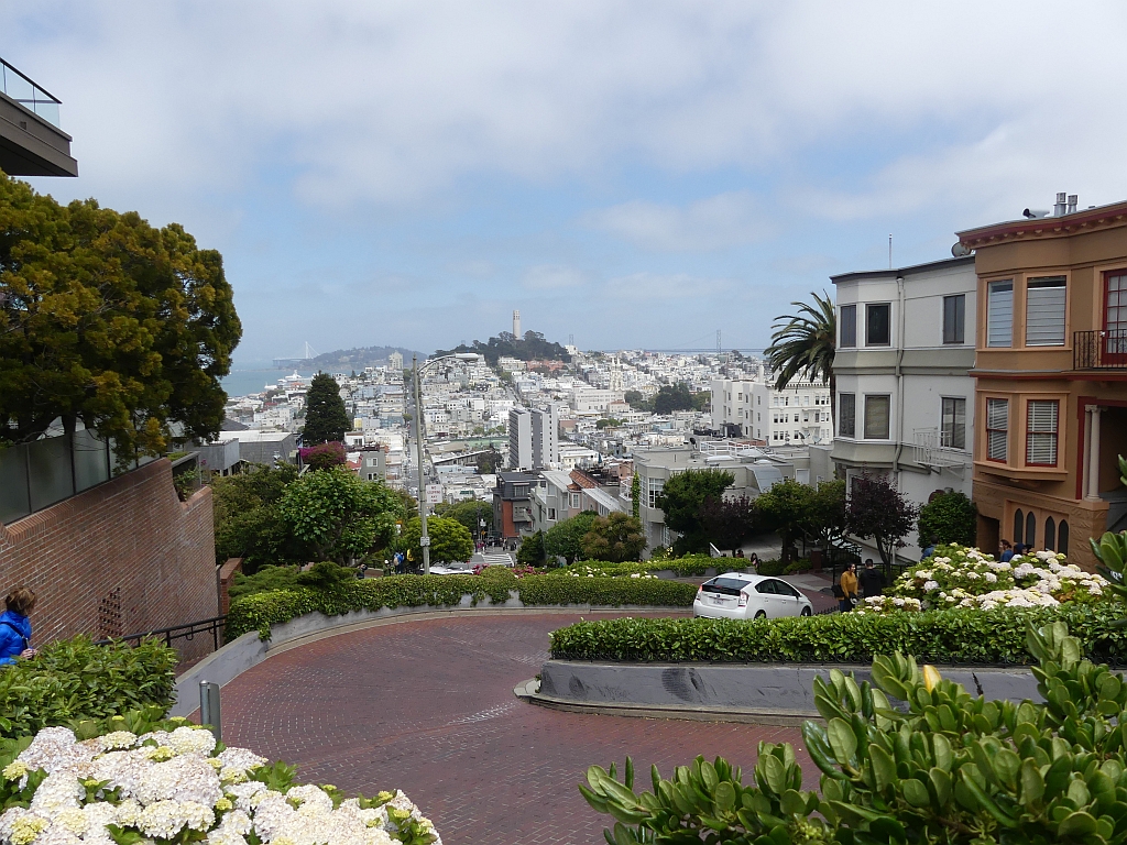 Was insofern witzig ist, als das man die Strasse so gebaut hat, damit man gut hinauffahren konnte. Die Strasse ist die berühmte Lombard Street.